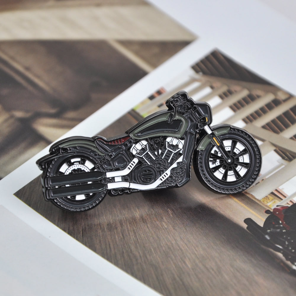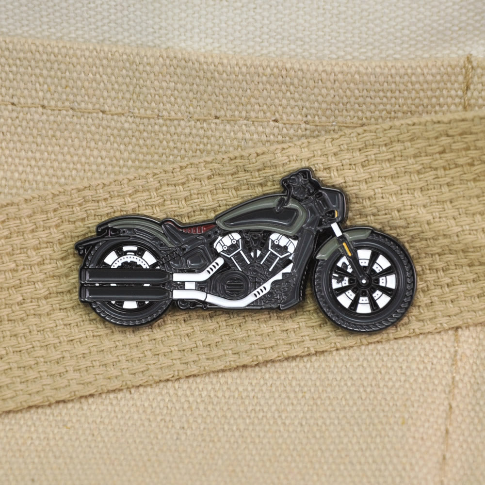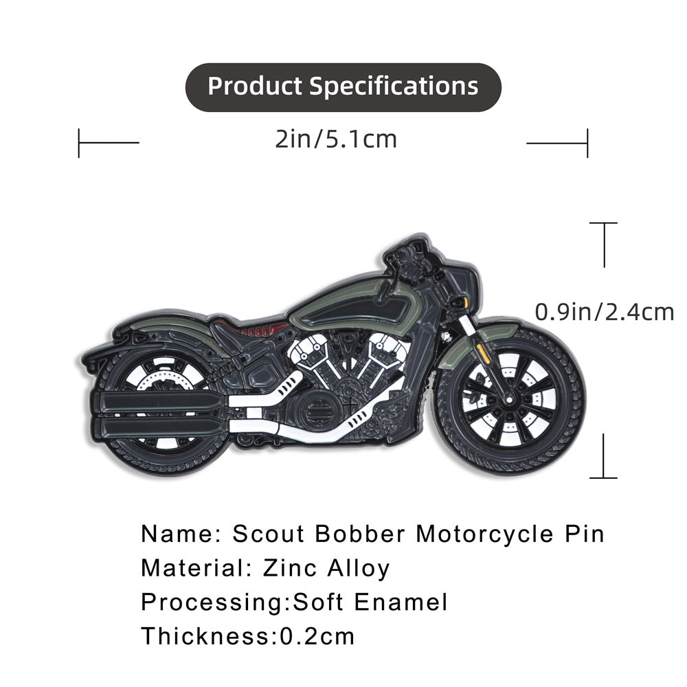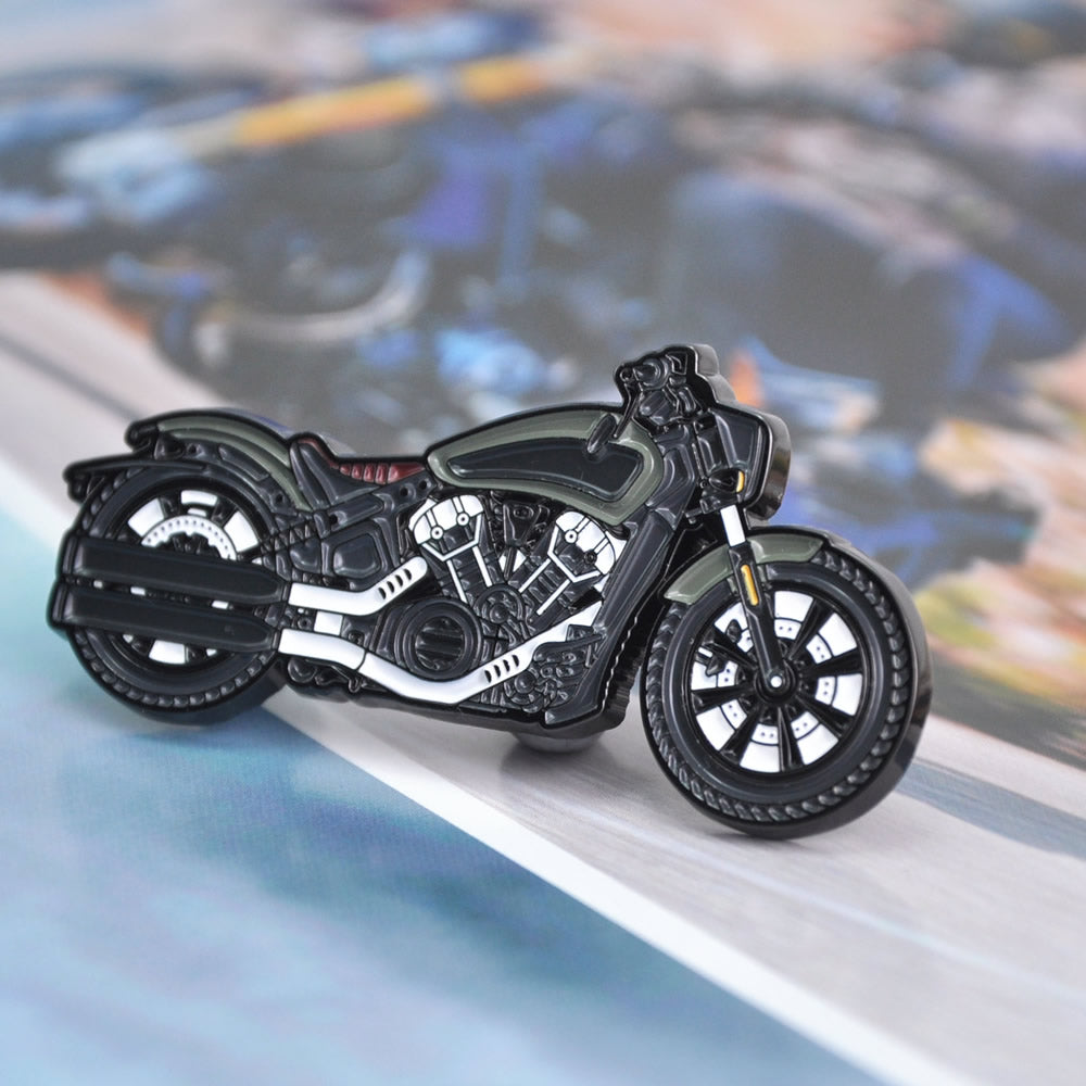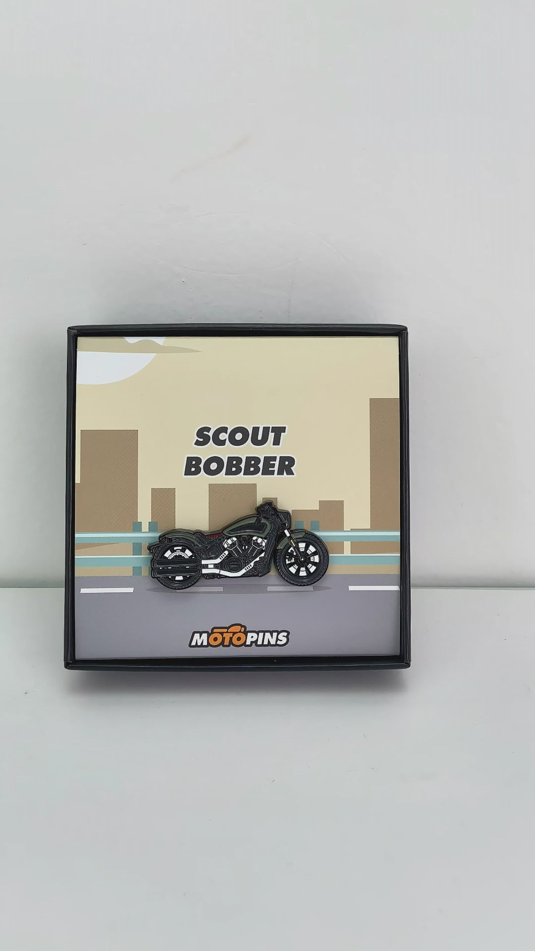 This is a 2 in motorcycle lapel pin badge inspired by Indian Scout Bobber,a must-have for devoted bobber motorcycle enthusiasts and collectors as well.